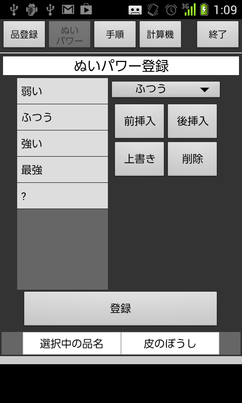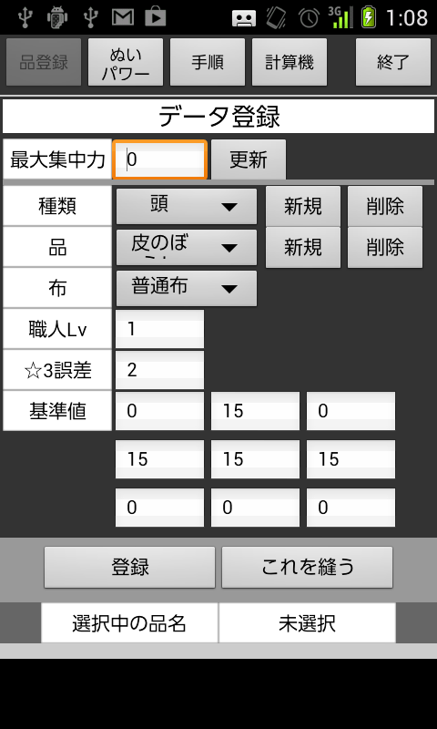 ◆3. 縫いたい品のぬいパワーがわかれば「ぬいパワー」画面で入力し、「登録」します。
