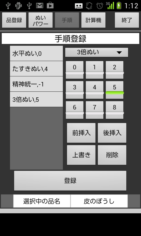 ◆品ごとに裁縫の手順を登録できます。登録すると計算機でその縫い方が自動反映されます。