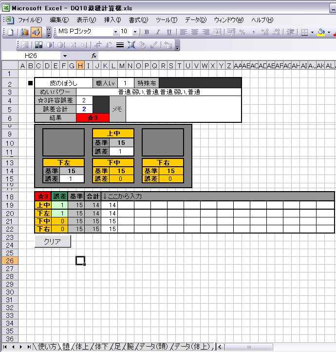 ドラクエ10裁縫計算機ダウンロード(ver0.9)